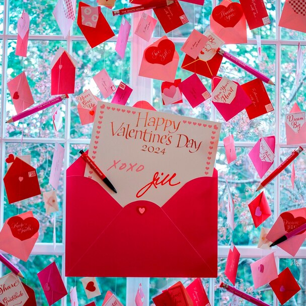 The mantle in the Red Room is dedicated to the foster care community, one of the first lady's main causes, according to a press release from the White House.